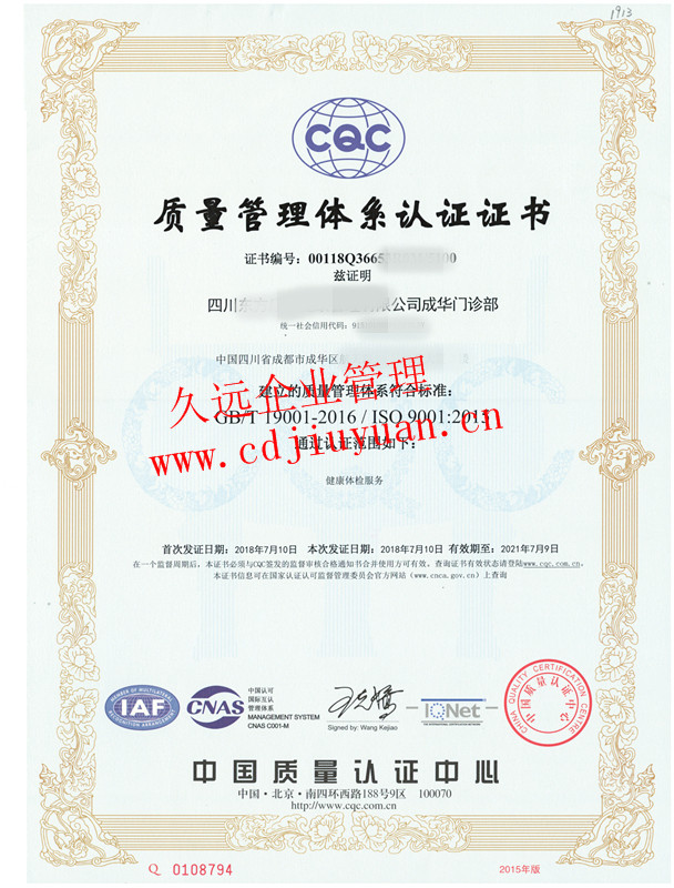 質量管理體系認證證書